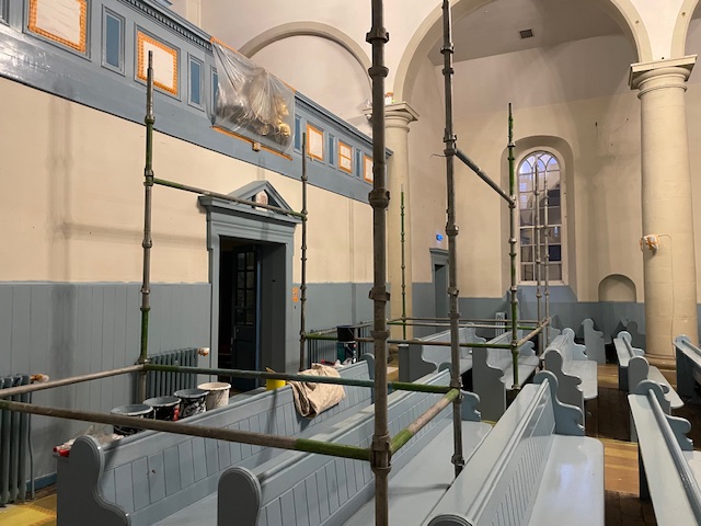 Thanks to the team who helped clear the church of moveable furniture early in the New Year, preparations for the redecoration of the sanctuary are now underway.